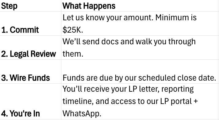 If you’re considering becoming a Limited Partner (LP), ask yourself: Are you conservative — more interested in capital preservation? Are you moderate — looking for reasonable risk with meaningful upside? Or are you aggressive — ready to swing big for large returns? Wherever you land, we help you match your allocation and timing accordingly.